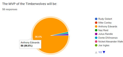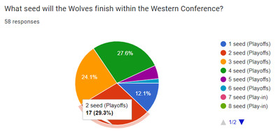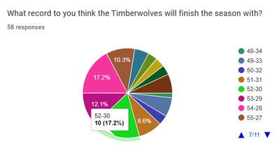 Over 80% of votes indicated the Wolves would finish anywhere between the second to fourth seed in the regular season. Having homecourt advantage for the first round of the postseason would be a great and important achievement, as the playoffs will surely be grueling.