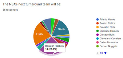 Will ROY Reed Sheppard help turn the Rockets around? Perhaps he won’t even be needed, as Alperen Şengün and Jalen Green have started to really blossom. A well-coached team with plenty of other tertiary young talent has all the makings of a team that will soon be competing. The Memphis Grizzlies (21.8%) and San Antonio Spurs (16.4%) also received a good amount of votes.