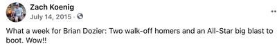 By the 8th inning it was a 5-2 advantage over the Senior Circuit, and that’s when Dozier entered the game. Facing Mark Melancon, Brian belted one…