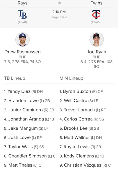 With Joe Ryan on the mound and looking for the sweep this Fourth of July weekend-ender, it could be another small-ball race to a few runs for the victory!