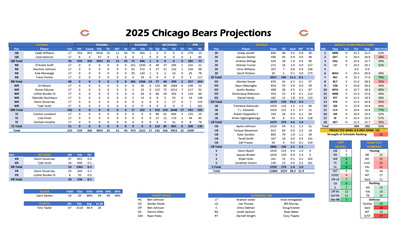 Below are projections for the 2025 Chicago Bears compiled by Mike Clay at ESPN. They include stat projections for starters, an assessment of schedule, each position group, and projected key stat rankings. Stat projections should come with a heavy variance caveat as the NFL is far from an exact science, but there is value in looking at position group rankings, although those too can vary, as a rough measure of more proven talent.