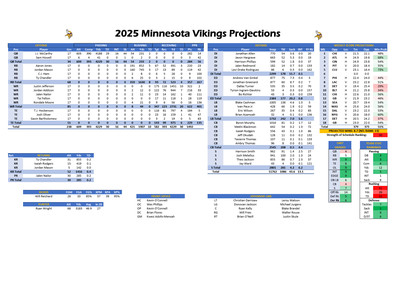 The Vikings have the second-best roster on paper in the division, according to Mike Clay in his projections above, and that’s with McCarthy at the standard rookie rank of 4, same as Cam Ward with the Titans. The Vikings also have one of the toughest schedules in the league, which is true for every team in the NFC North this season, but they also have arguably done the most this off-season to improve their starting roster- Vikings and Bears improved the most on paper.