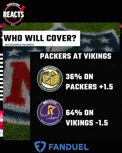 Speaking of that game, we also have a look at where the money on that one is going, thanks to our friends at FanDuel. The line for this one has fluctuated a lot over the course of this week, but the Vikings are now the favorite again, and it appears that there’s some agreement there from those who are putting their money down on it.